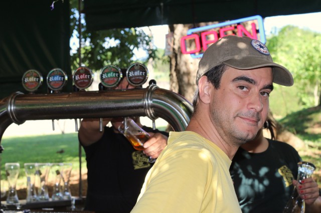 Pra quem aprecia cerveja de qualidade, daquelas beeeem encorpadas, vai pirar! Mas sugiro ir com tempo pra beber e depois ficar lá esperando o álcool sublimar ou ir de táxi mesmo, porque o negócio é forte, viu? 😀 Olha só a dupla já atacando! O pai a ponto de encher o caneco e a cria doida pra quebrar o barril. 😛