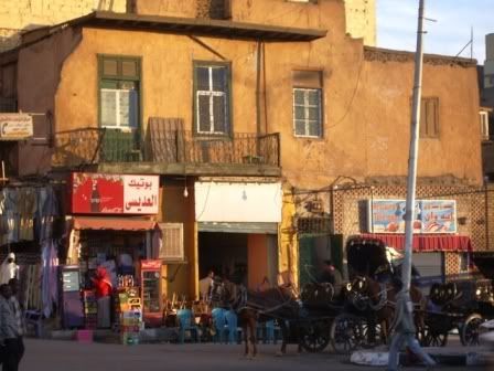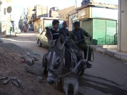 Nunca vi tanta e talvez tenha visto pouco. Estava mal acostumada com as paisagens de pobreza que já vi no Brasil. No Brasil sao quadros que nao impressionam tanto, pois sao constantemente misturados com focos de riqueza ou conforto médio das classes mais abastadas. No Egito nao vi isso. Ao longo de toda nossa viagem através do Nilo SÓ vimos pobreza, mas nao miséria. Nao lembro de ter visto um mendigo e acredito que isso nao deva ocorrer, pois pelo que li e ouvi, os muçulmanos sao um povo muito solidário e estao sempre ajudando aos que necessitam. Abrem mao de um maior conforto para poder abrigar algum necessitado. Só 5% do Egito é considerado rico e o restante está na mesma linha de pobreza, nem mais, nem menos. A renda média do egito é equivalente à METADE da nossa no Brasil. No entanto, é interessante observar que a taxa de violência independe da classe social, pois essa é baixíssíma no Egito. Eu e o Rô chegamos a andar alguns quarteiroes dentro de “favelas” e ruelas sinixxxtras e, no máximo, fomos abordados por crianças que andavam em uma carroça puxada por um burrico, pedindo dinheiro em troca de uma foto.