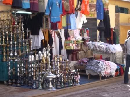 Maaaaaasss toda regra tem sua excecao!!! Um dos mercadores é o cara mais esclarecido e inteligente que conhecemos! Entramos na banquinha do “Mohamed” (lá todos ou chamam Mohamed ou Ahmed…) para olhar alguns instrumentos musicais diferentes que estavam lá expostos. Ele foi super gentil e nao ficou nos “empurrando” nada (aleluia!). Vi que ele ficou me observando (e olha que eu caprichei pra ficar feia) e, de repente, seguiu-se o diálogo a seguir: