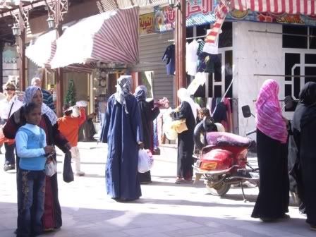 Vimos no Egito poucas mulheres trabalhando na area comercial, nos remetendo à quase certeza de que dedicam-se quase sempre aos trabalhos domésticos. Nao sao proibidas de trabalhar fora, mas, sem dúvida, sao melhor aceitas quando seguem “as regras”.