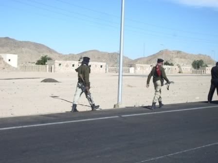 Após uma série de atentados em 2005, somados ao atentado contra um ônibus de turismo em 1997, o governo egípcio pegou pesado na seguranca para o turismo. Após ler sobre esses atentados continuo achando a açao do governo muito extrema mas, sei lá, talvez eu desconheça o verdadeiro perigo relacionado à atentados terroristas. O Egito em si é muito seguro pelo que senti e pelo que já ouvi, mas infelizmente a onda de terrorismo também está chegando por lá. Sentimos o “climao” logo na nossa chegada. Desembarcamos no aeroporto de Hurghada, pernoitamos no hotel e seguimos cedinho de ônibus para Luxor, aproximadamente 300 km. Percorremos estes 300km atravessando o deserto do Saara através de uma estrada, acompanhando um comboio de aprox. 30 ônibus escoltados por carros policiais munidos de metralhadoras. Foi assustador e estressante, pois a partir daquela cena me senti num campo de guerra e desconfiava de qualquer pessoa que se aproximasse de mim. Além disso, todo o trânsito local foi bloqueado para a passagem do comboio, inclusive as vias transversais eram monitoradas por policiais armados com metralhadoras ou fuzis. Achei triste. Me senti mal de obrigar aquele povo a parar para “garantir a segurança do comboio” em detrimento à liberdade deles de ir e vir como cidadaos de direito. Ao mesmo tempo nos tornamos atraçao, pois muitos que estavam parados em suas carrocas nos cruzamentos nos acenavam como se nao fossemos reais pra eles, me senti inatingível… me senti uma pintura de um quadro qualquer…