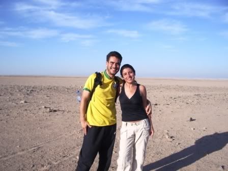 Claro que nao poderímos deixar de dar uma volta de camelo, o meio de transporte mais antigo daquela regiao. Nao foi uma expediçao beduína, mas percorremos aproximadamente 4 km de deserto em uns 45 minutos de camelada. Aliás, conforme a definiçao do Rodrigo, os camelos sao bichinhos simpáticos e sorridentes que, apesar de serem bem maiores que os cavalos, fazem cocô igual aos cabritos, em pelotinhas.