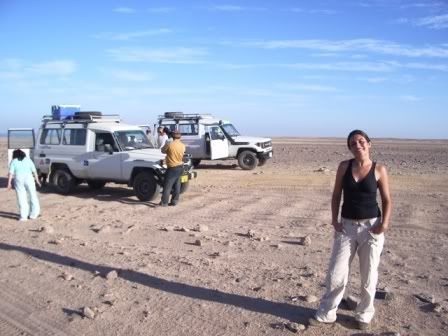 Mas valeu a pena, mesmo tendo estress incluso no pacote, valeu muuuuitooo a pena!!! Atravessamos uns 40km quilômetros de jipe, conhecendo assim um pouco do interior do deserto que é simplesmente fascinante!!!! Nao, nao dá pra explicar, assim como nao se explica pra alguém que nunca viu o mar, o que é, e como é o mar… afinal, teoricamente, o mar nada mais é do que um monte de água e o deserto nada mais é do que um monte de areia e pedras! Como explicar a beleza de coisas assim???? Enfim, nao consigo mesmo…
