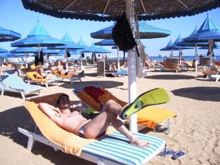 Como todos hotéis do complexo, o que ficamos tinha a sua prainha particular e toda estrutura necessária que vocês possam imaginar: garcons, ajudantes (que até sua toalha queriam estender), toboágua, marina, aula de Windsurf, ginastica, etc. É ou nao a ilha da fantasia!? A areia era tao mentirosa quanto eu dizer que nao vi nenhuma múmia européia fazendo top-less!!!