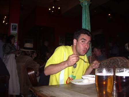 À noite fomos beliscar alguma coisa num Pub bem típico frequentado por locais. Foi interessante percerbermos que quase todos os bares na quinta-feira fazem “Quiz” ao invés de música ao vivo. Uma idéia super interessante, pois a galera passa a noite bebendo e respondendo questoes sobre sua própria cultura e sociedade. Total “Cult”!!! Também tivemos nossa noite de Rock´n Roll. Um bar totalmente descolado e um som totalmente “barulhento”!!! Mas o marido ficou feliz, isso já fez valer a pena… Afff… O que nao faco por amor!!!