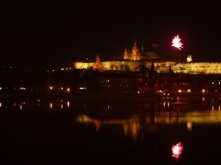 Passamos a “virada” para 2007 ao lado do Rio Vtlava onde pudemos observar a queima de fogos sobre um dos castelos de Praga… liiindo!!!! Uma queima de fogos interminável…. A maioria dos turistas assistiu na praça central ou sobre a famosa e secular “Charles Bridge” ( traduzindo Ponte Carlos… mas fazer isso é quase um sacrilégio!). Até pensamos na idéia de ficar na ponte, mas só de tentar atravessá-la para chegar ao outro lado já foi um sufoco que pode ser comparado às pessoas que tentam atravessar os foliões de um Trio Elétrico no carnaval da Bahia…. a diferença é que em Praga você e sufocado por gente usando perfume francês!!!! Hehehe… péssimo!