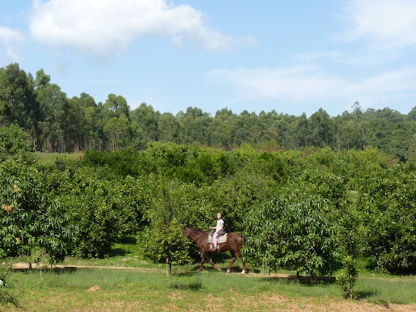 Agora vem a sensação mais impressionante do sítio: o “Selbstpflück” !!! Esse sistema é super comum lá na Alemanha e, por aqui parece que é chamado “Colhe-Pague”. Na hora que vi achei sensacional, pois eu JURAVA que um sistema desses no Brasil seria IMPOSSÍVEL! Mas esse sítio, repito, superou todas minhas expectativas. Adorei e não vejo a hora de voltar lá pra colher umas laranjas bahia que estavam bem apetitosas. 😀